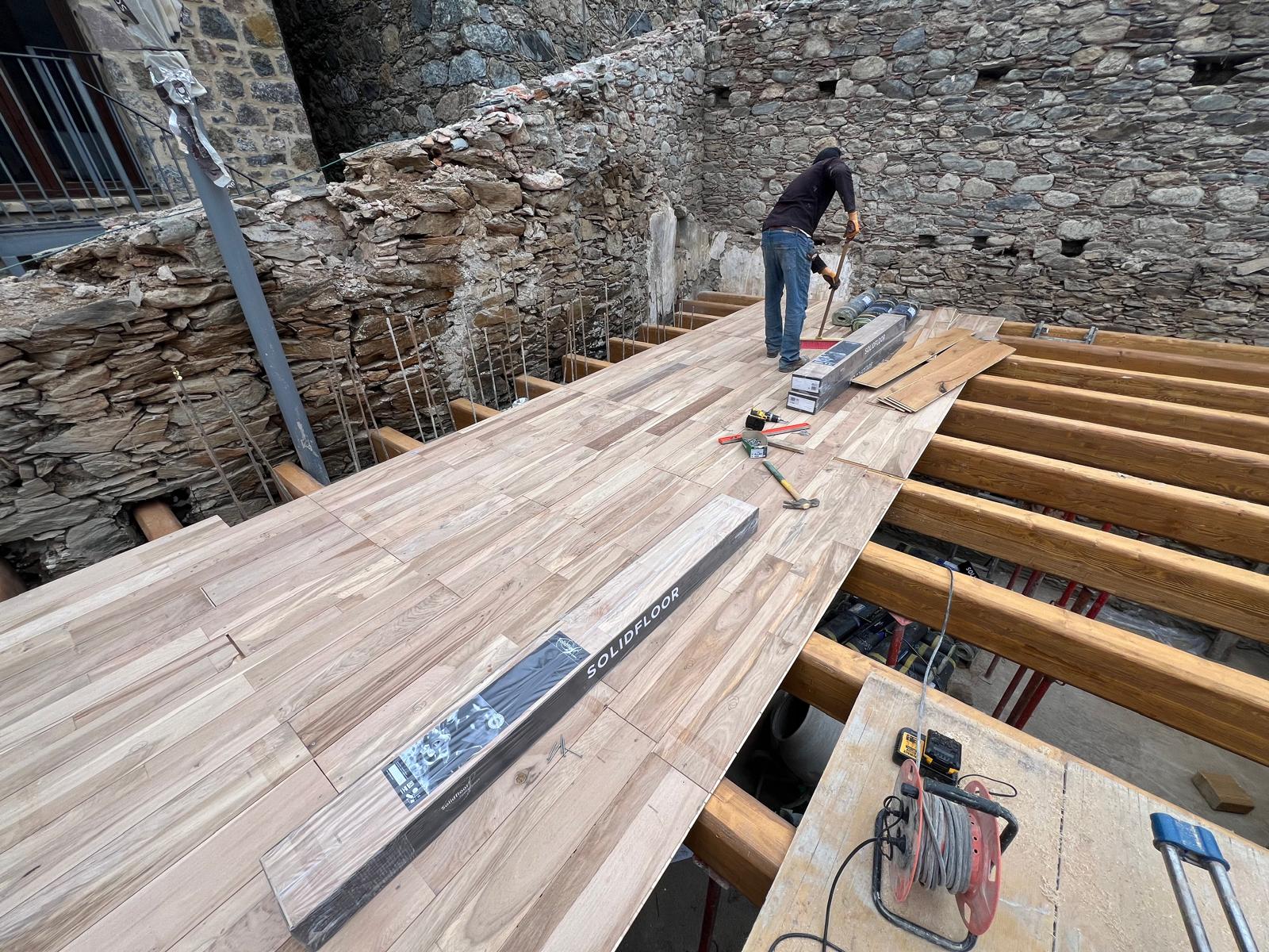 - Encàrrec : reconstrucció total de casa de poble medieval, patrimoni interès nacional. Enderroc i reconstrucció de murs amb les mateixes pedres recuperades, i tornades a col•locar seguint la mateixa tècnica, tractant de imitar al màxim la façana original. Interiors de fusta i pedra amb aïllaments i instal•lacions actual per donar confort sense canviar el seu caràcter.
